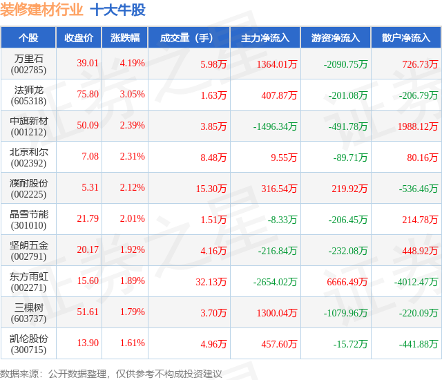 4月1日拆建筑材行业十大牛股一览